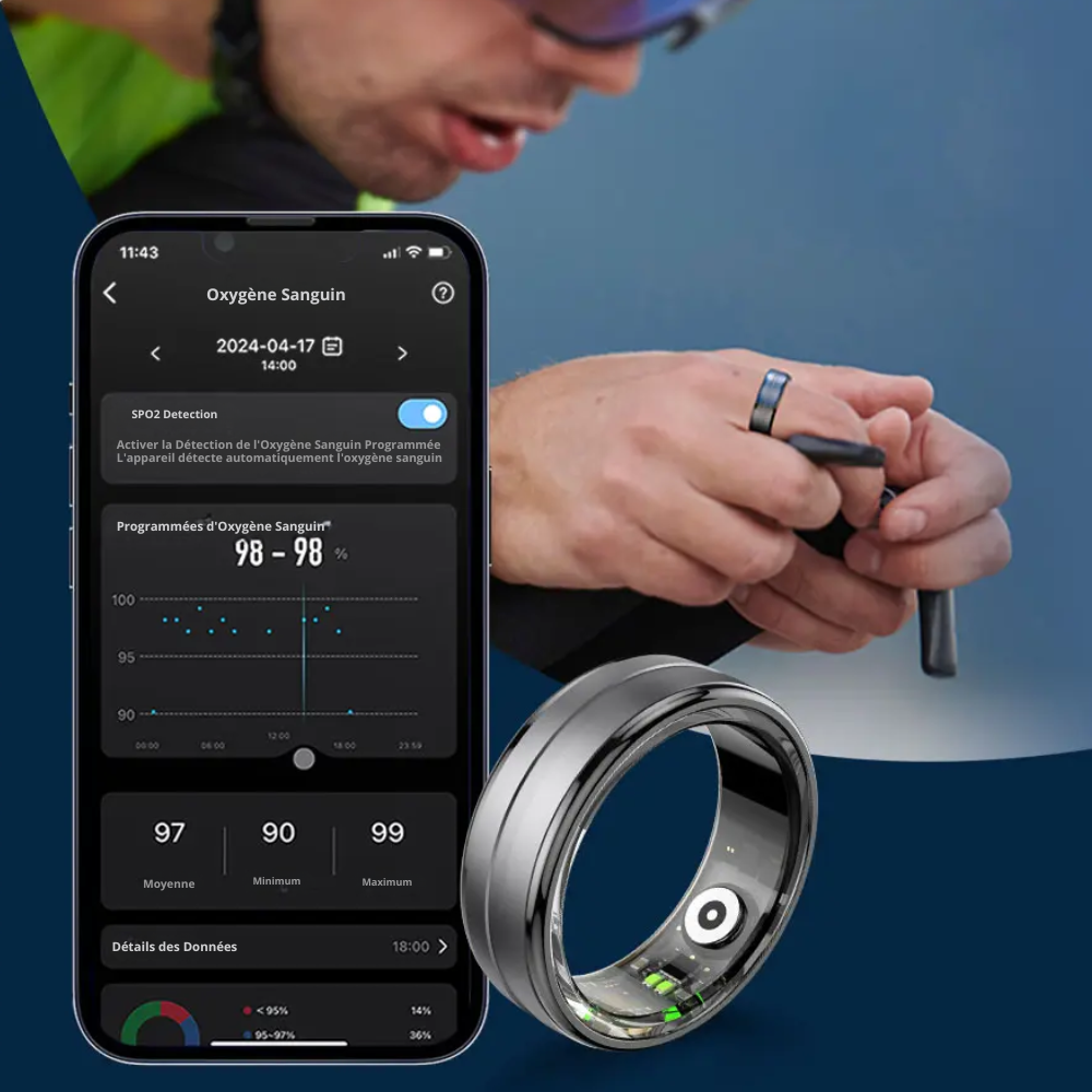 L’application dédiée vous permet de synchroniser la bague avec votre smartphone, qu’il soit iOS ou Android. Suivez vos progrès quotidiens, analysez vos performances, et fixez-vous des objectifs pour optimiser votre bien-être.